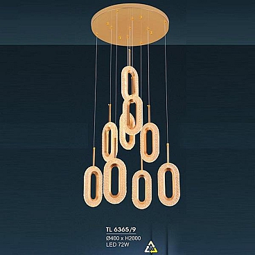 35 - TPL 2206T600: Đèn thả Phale K9 cap cấp - KT: Ø600mm x H1800mm - Đèn chân E14 x 44 bóng