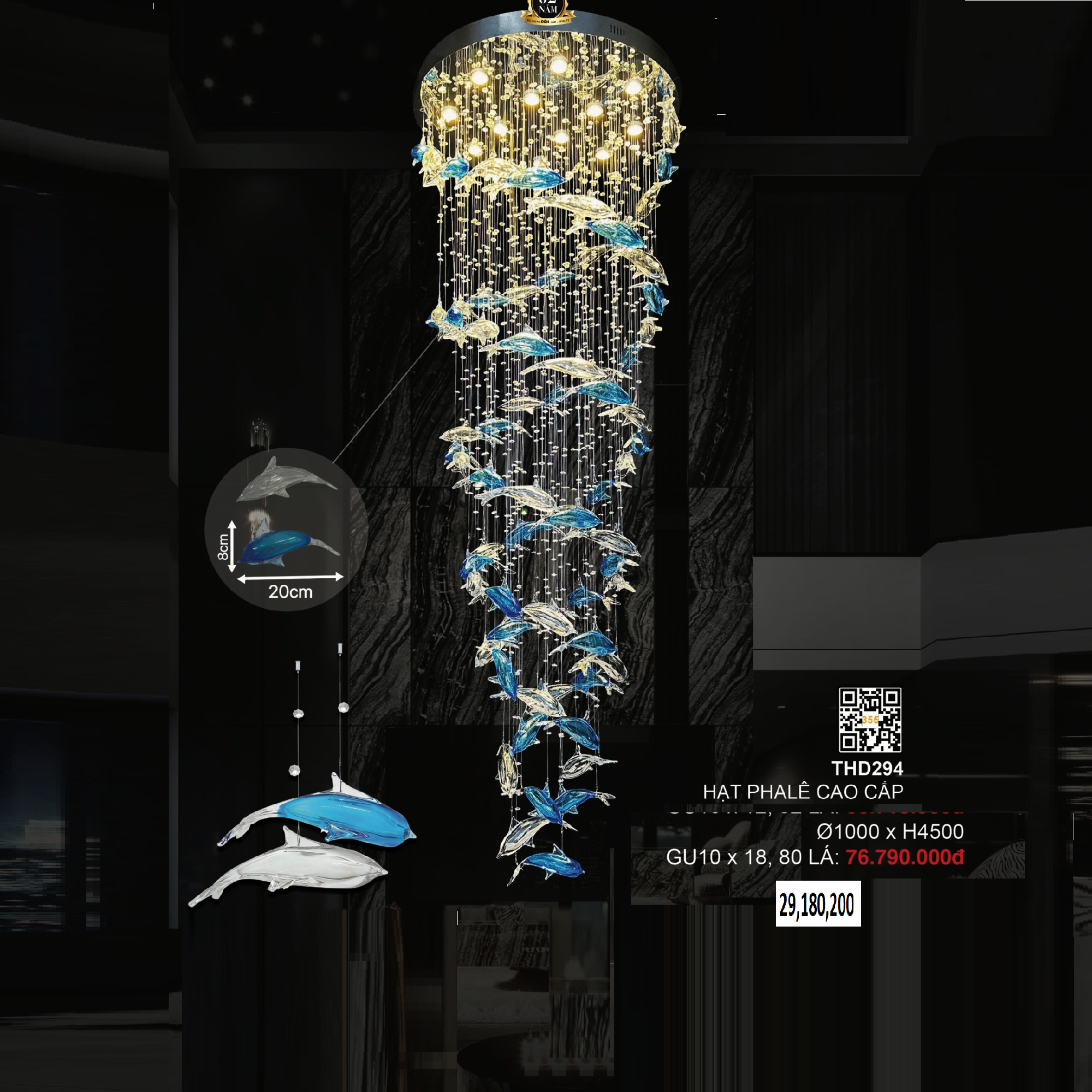 - Sản phẩm: 3- TPL294: Đèn thả thông tầng Phale LED - KT: Ø800mm x H3500mm - Đèn LED GU10 x 12 bóng