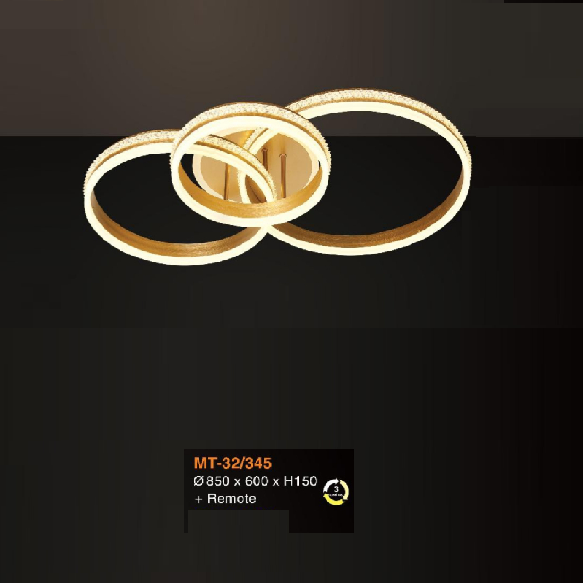 • Sản phẩm: V - MT - 32/345: Đèn áp trần LED 3 vóng, thân xi vàng - KT: L850mm x W600mm x H150 - Đèn LED đổi 3 màu