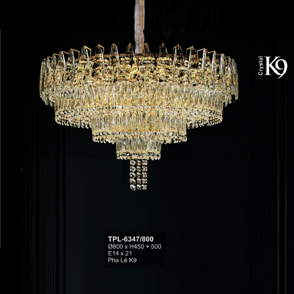 • Sản phẩm: A - TPL - 6347/800: Đèn thả Phale K9 - KT: Ø800mm x H450mm +500mm - Bóng đèn E14 x 21 bóng