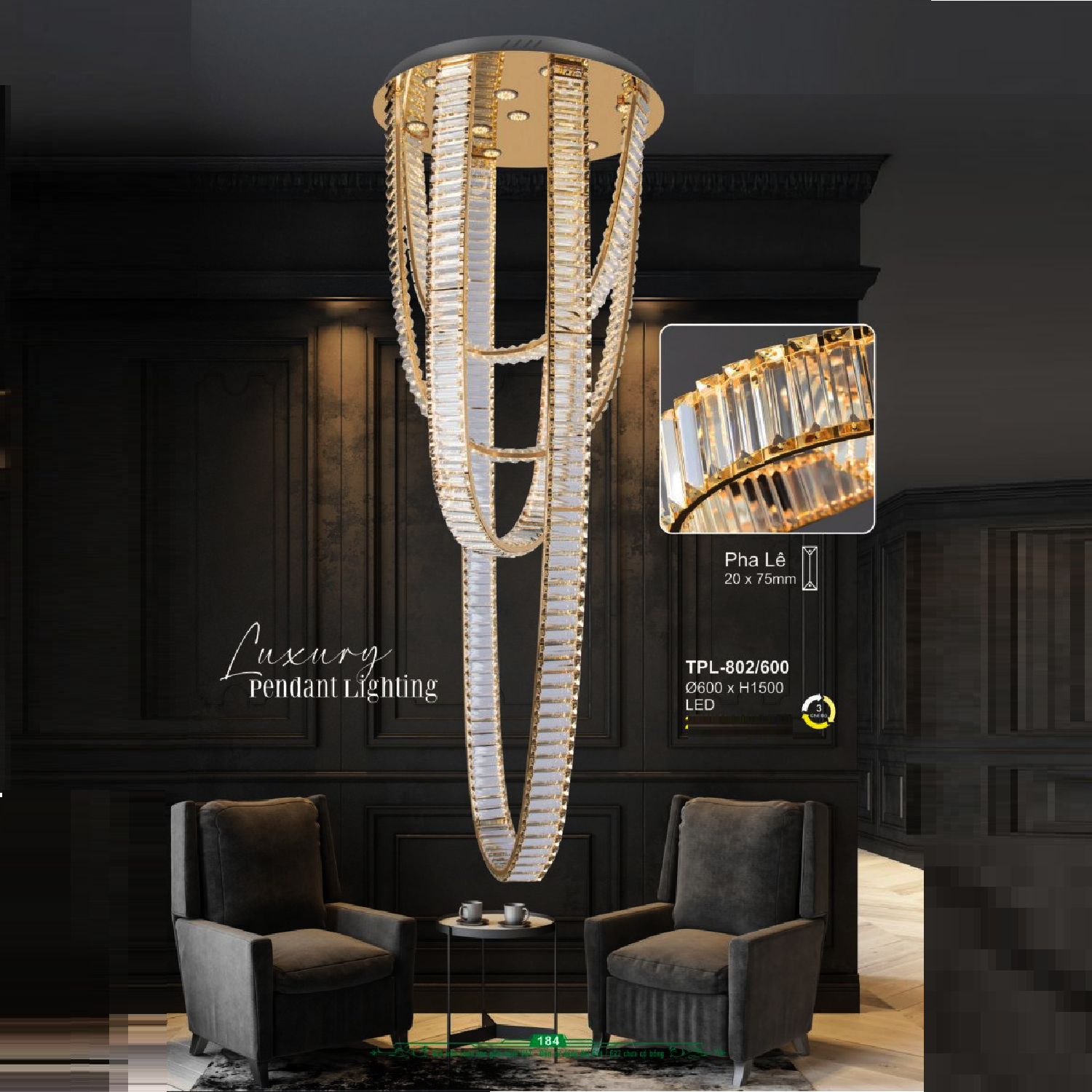 • Phù hợp                  : Gắn sảnh thông tầng Biệt thự, Nhà phố, Nhà hàng, khách sạn, v.v…