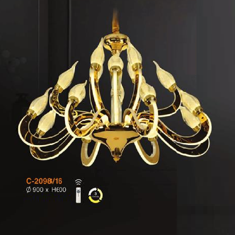 - Sản phẩm: E - C - 2098/18: Đèn chùm LED 18 tay - KT: Ø900mm x H 600mm - Đèn LED đổi 3 màu - Remote