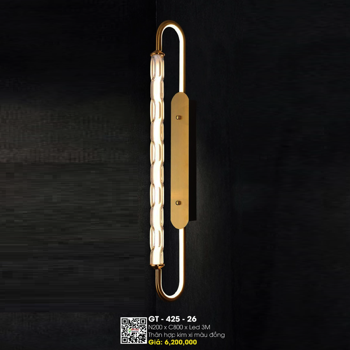 GT - 425-26: Đèn gắn tường LED  - KT:  W200mm x H800mm -  Đèn LED đổi 3 màu