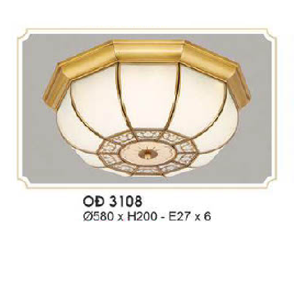 - Sản phẩm: HF - OĐ 3108: Đèn ốp trần đồng - KT: Ø580mm x H200mm - Bóng đèn E27 x 6 bóng