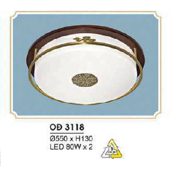 HF - OĐ 3118: Đèn ốp trần đồng đế gỗ - KT: Ø550mm x H130mm - Đèn LED 80W x 2 ánh sáng đổi 3 màu
