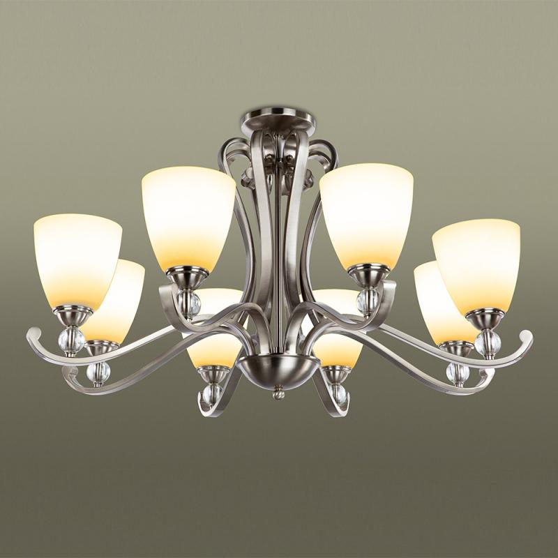 - Mô tả : KT: 808 x H 480mm - Khung đèn kim loại màu bạc, chóa đèn bằng sứ - Đèn E27*8 bóng ( tính riêng)