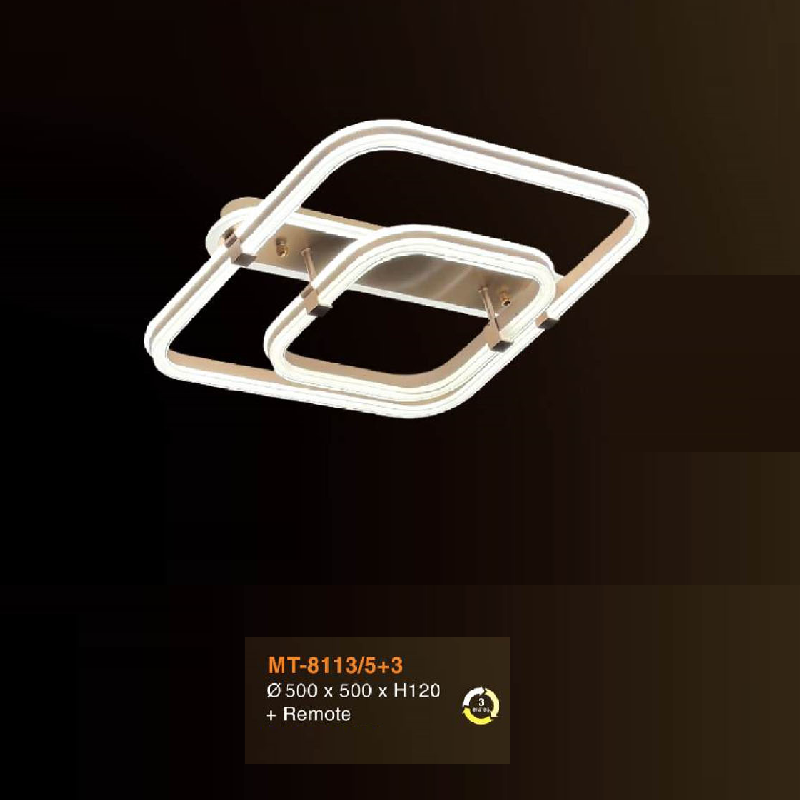 • Sản phẩm: MT - 8113/5+3: Đèn áp trần 2 vòng LED - KT: L500mm x W500mm x H120mm - Đèn LED đổi 3 màu