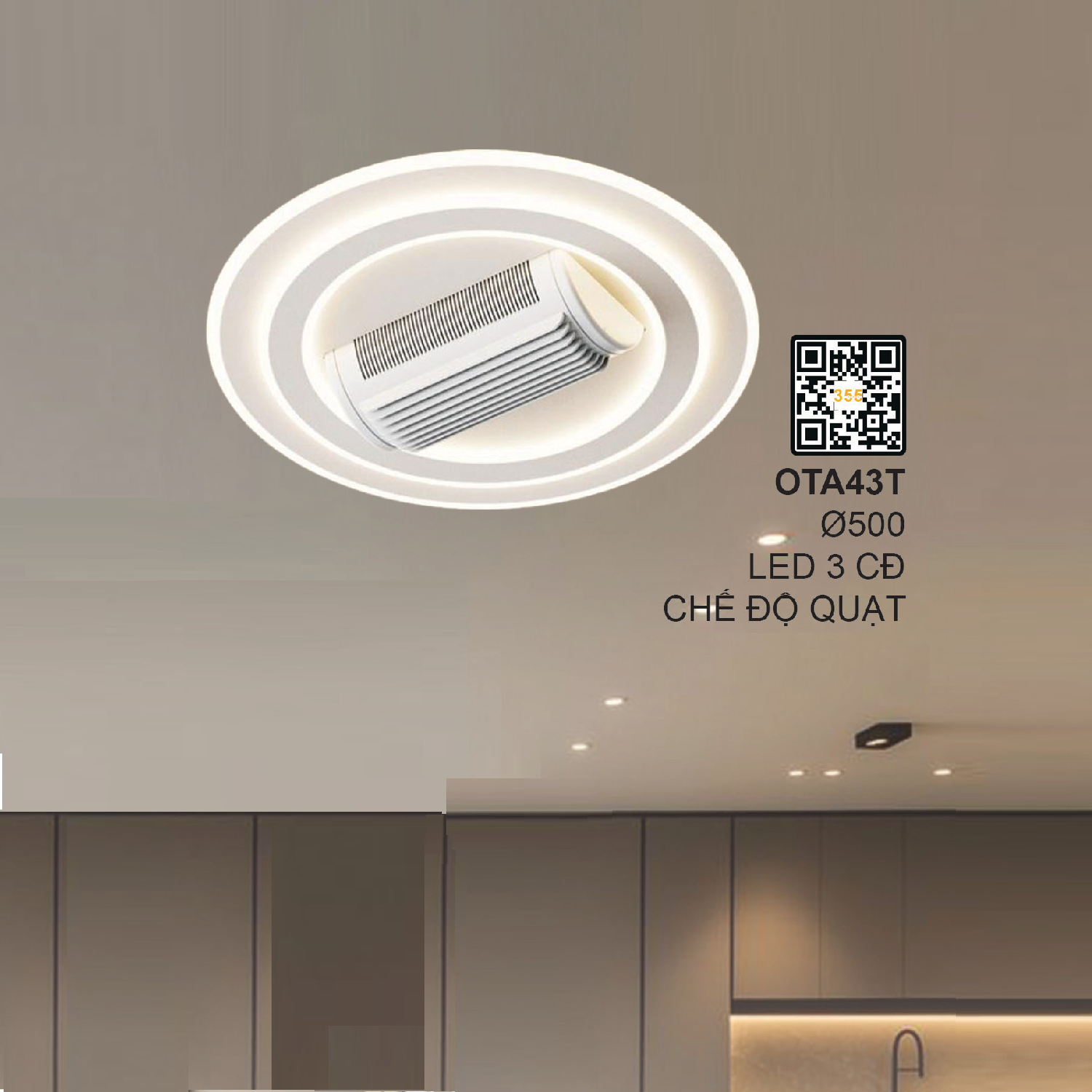 5. OTA43T: Đèn ốp trần LED + Quạt - KT: Ø500mm - Đèn LED đổi 3 màu + Quạt