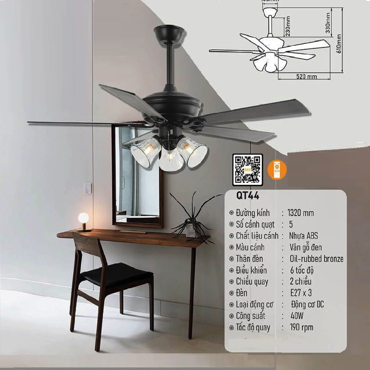 QT47: Quạt trần đèn 5 cánh Nhựa ABS