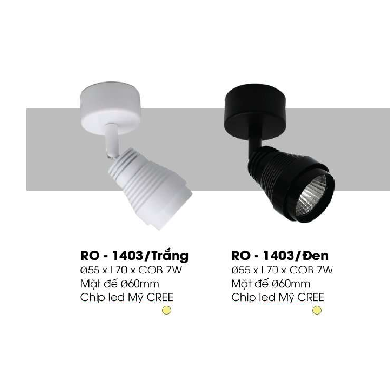 RO - 1403/Đen: Đèn rọi - KT: Ø55mm x L70mm - Đèn LED COB 7W ánh sáng vàng