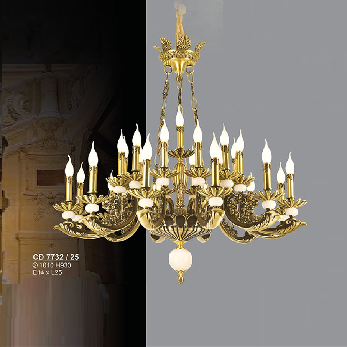 5. S - CĐ 7732/25: Đèn chùm đồng nến 25 tay - KT: Ø1010mm x H930mm - Bóng đèn E14 x 25 bóng