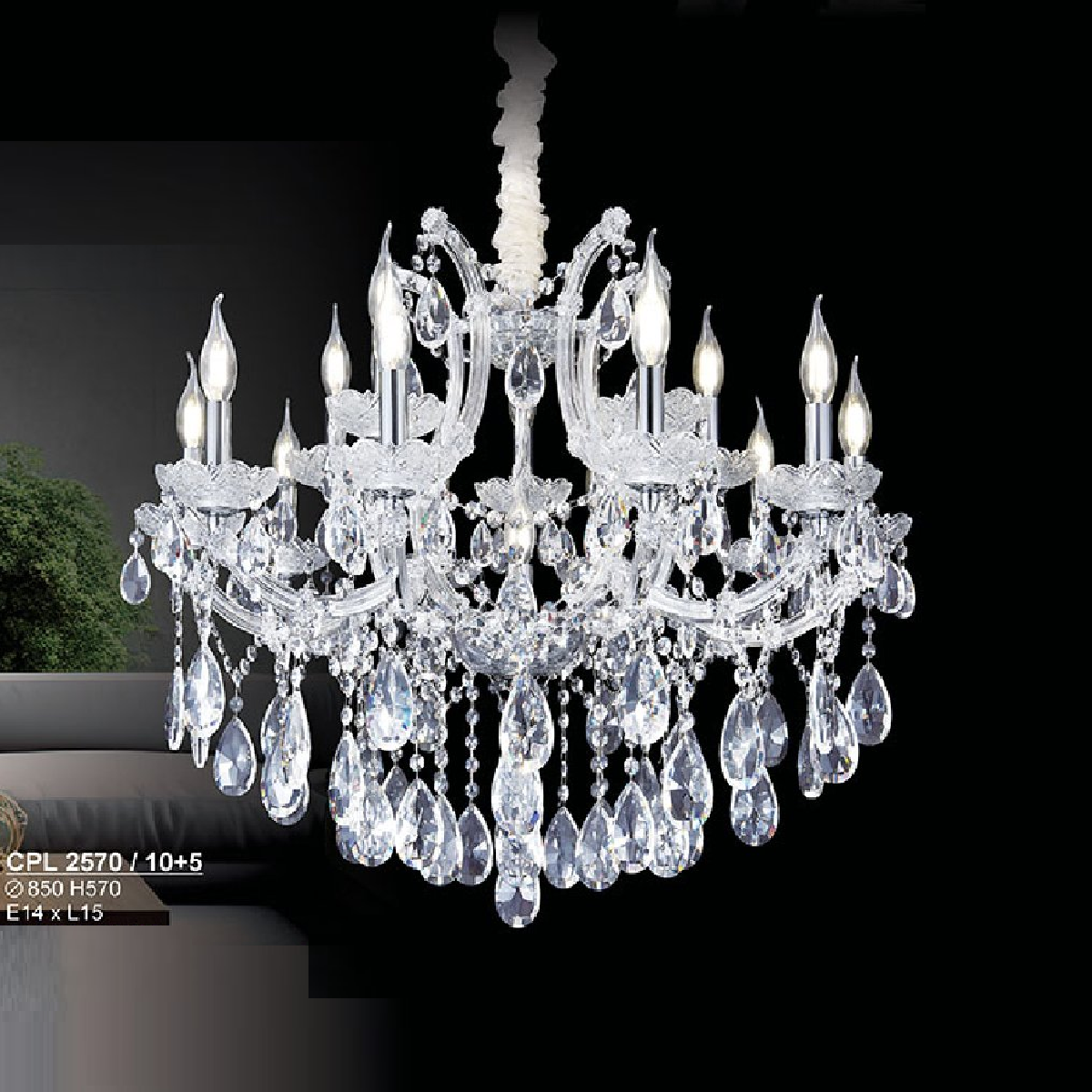 - Sản phẩm: S - CPL 2570/10+5: Đèn chùm Phale nến 15 tay - KT: Ø850mm x H570mm - Bóng đèn E14 x 15 bóng