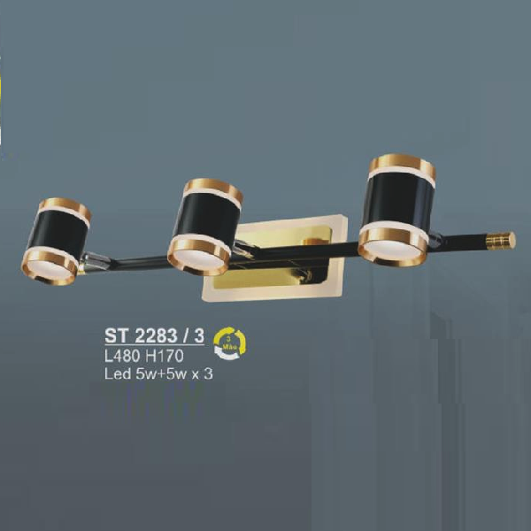 SN - ST 2283/3: Đèn rọi tranh/gương 3 bóng, đế đèn có đèn LED - KT: L480mm x H170mm - Đèn LED 5W + 5W x 3 đổi 3 màu