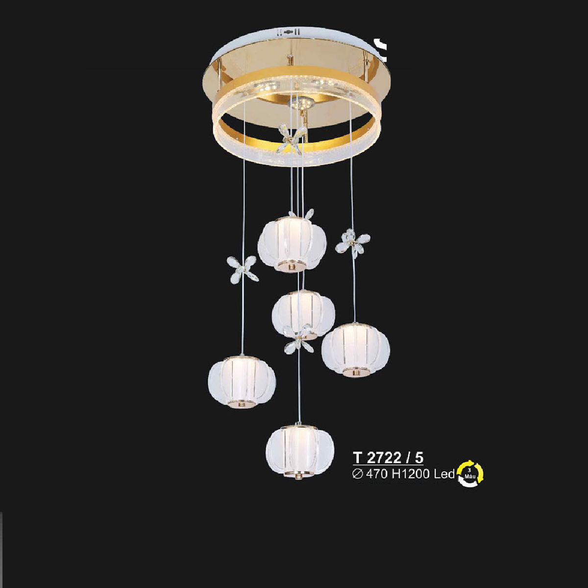 • Sản phẩm: T 2722/5: Đèn thả LED 5 bóng - KT: Ø470mm x H1200mm - Đèn LED đổi 3 màu