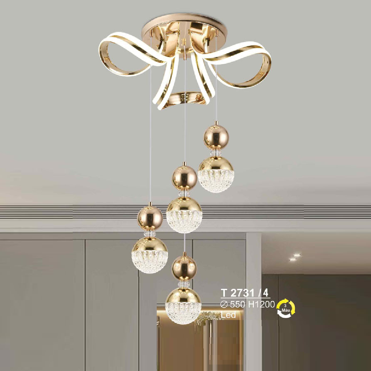 • Sản phẩm: T 2731/4: Đèn thả LED 4 bóng - KT: Ø550mm x H1200mm - Đèn LED đổi 3 màu