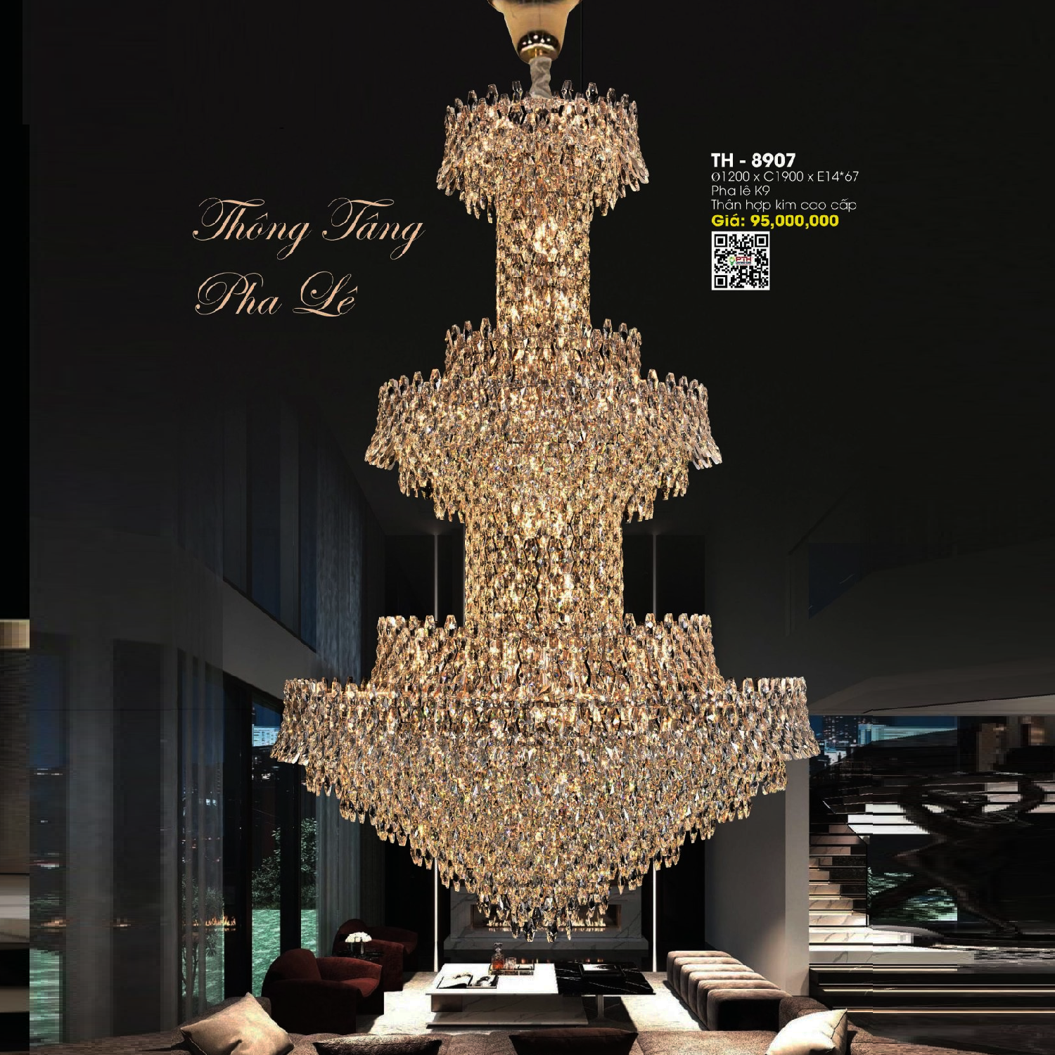 5. TH - 8907: Đèn thả Phale K9 cao cấp - KT: Ø1200mm x H1900mm - Bóng đèn E14 x 67 bóng