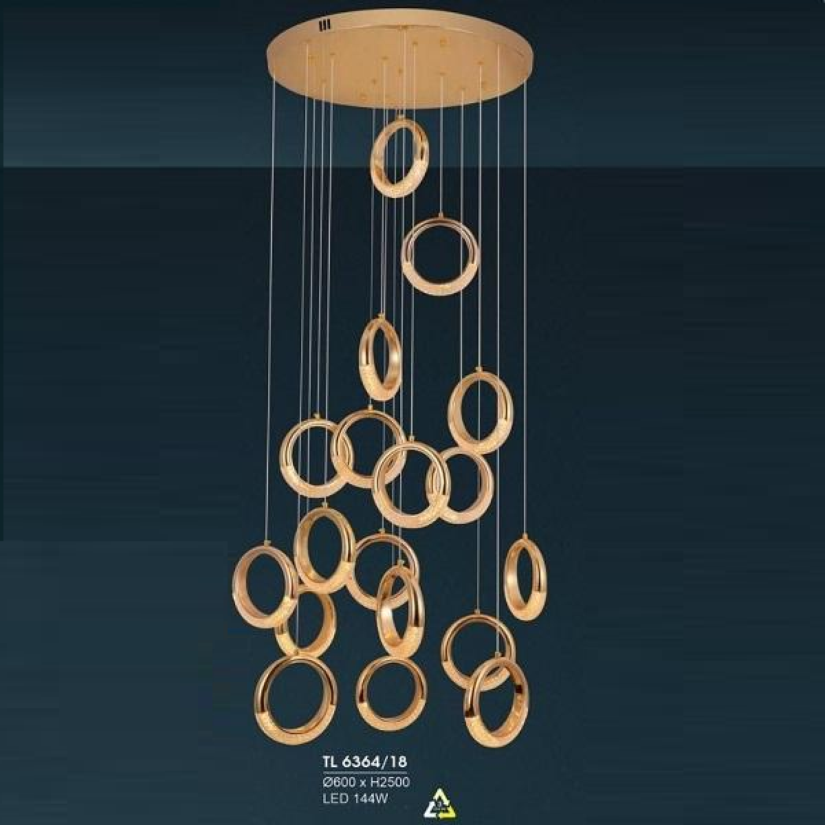HF - TL 6364/18: Đèn thả dây vòng LED 18 bóng - KT: Ø600mm x H2500mm - Đèn LED 144W, ánh sáng đổi 3 màu