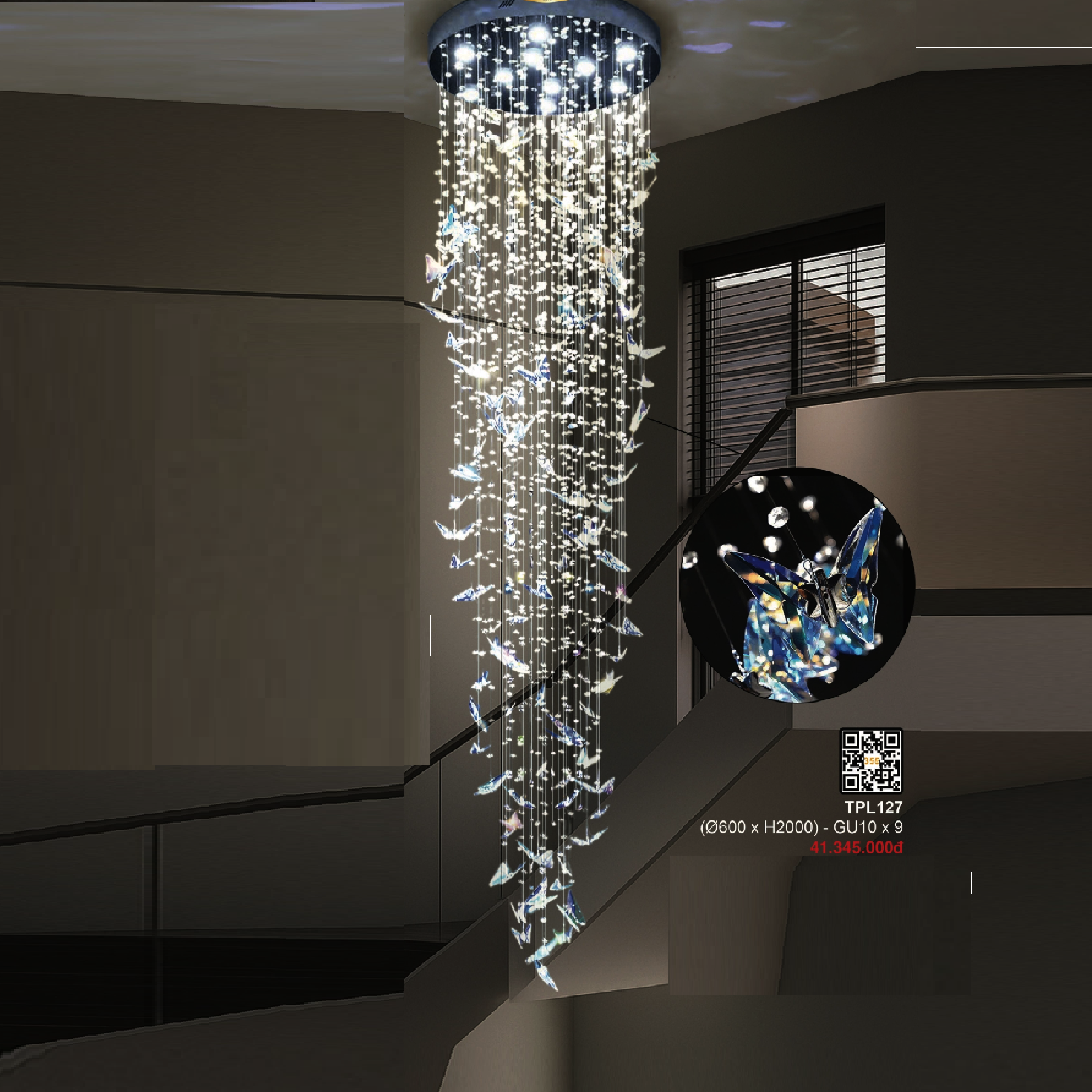 • Sản phẩm: TPL127: Đèn thả thông tầng Phale LED - KT: Ø600mm x H2000mm - Bóng đèn LED GU10 x 9 bóng