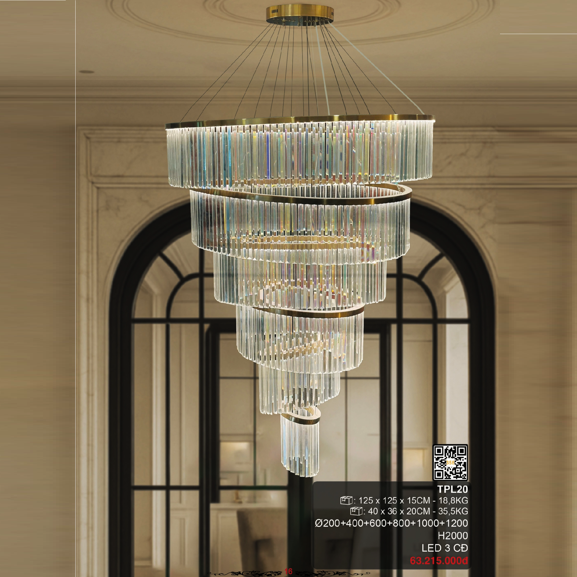 5. TPL20: Đèn thả thông tầng 6 vòng Phale LED - KT: Ø (200+400+600+800+1000+1200)mm x H2000mm - Đèn LED đổi 3 màu