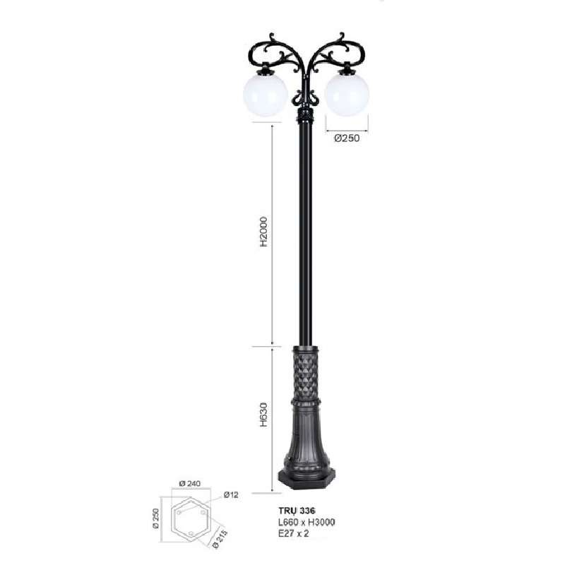 • Sản phẩm: TRỤ 336: Đèn trụ hợp kim 2 bóng, chao quả bi