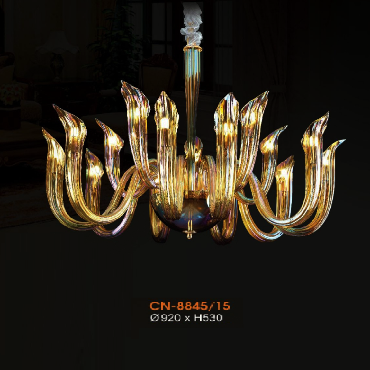 • Sản phẩm: V - CN 8845/15: Đèn chùm 15 tay thủy tinh - KT: Ø920mm x H530mm