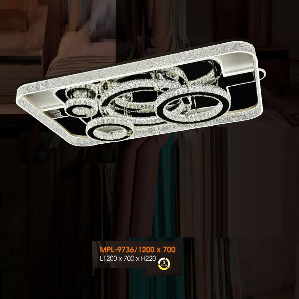 V - MPL- 9736/1200x700: Đèn áp trần Phale LED chữ nhật - KT: L1200mm x W700mm x H220mm - Đèn LED đổi 3 màu