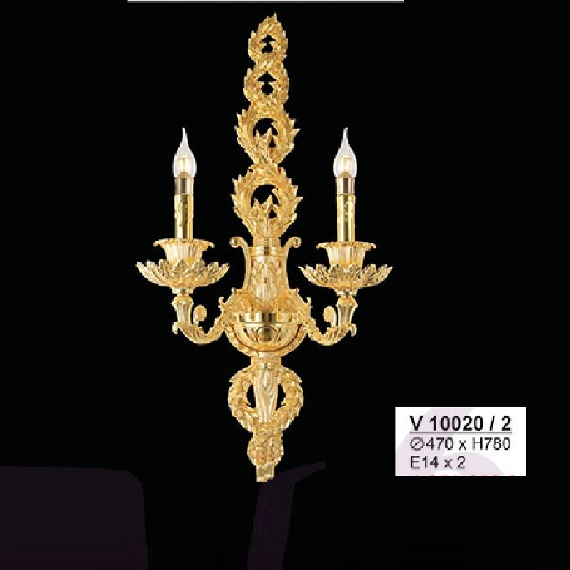 • Sản phẩm: V10020/2: Đèn gắn tường Hợp kim xi màu đồng 2 tay - KT: Ø470mm x H780mm - Bóng đèn nến E14 x 2 bóng