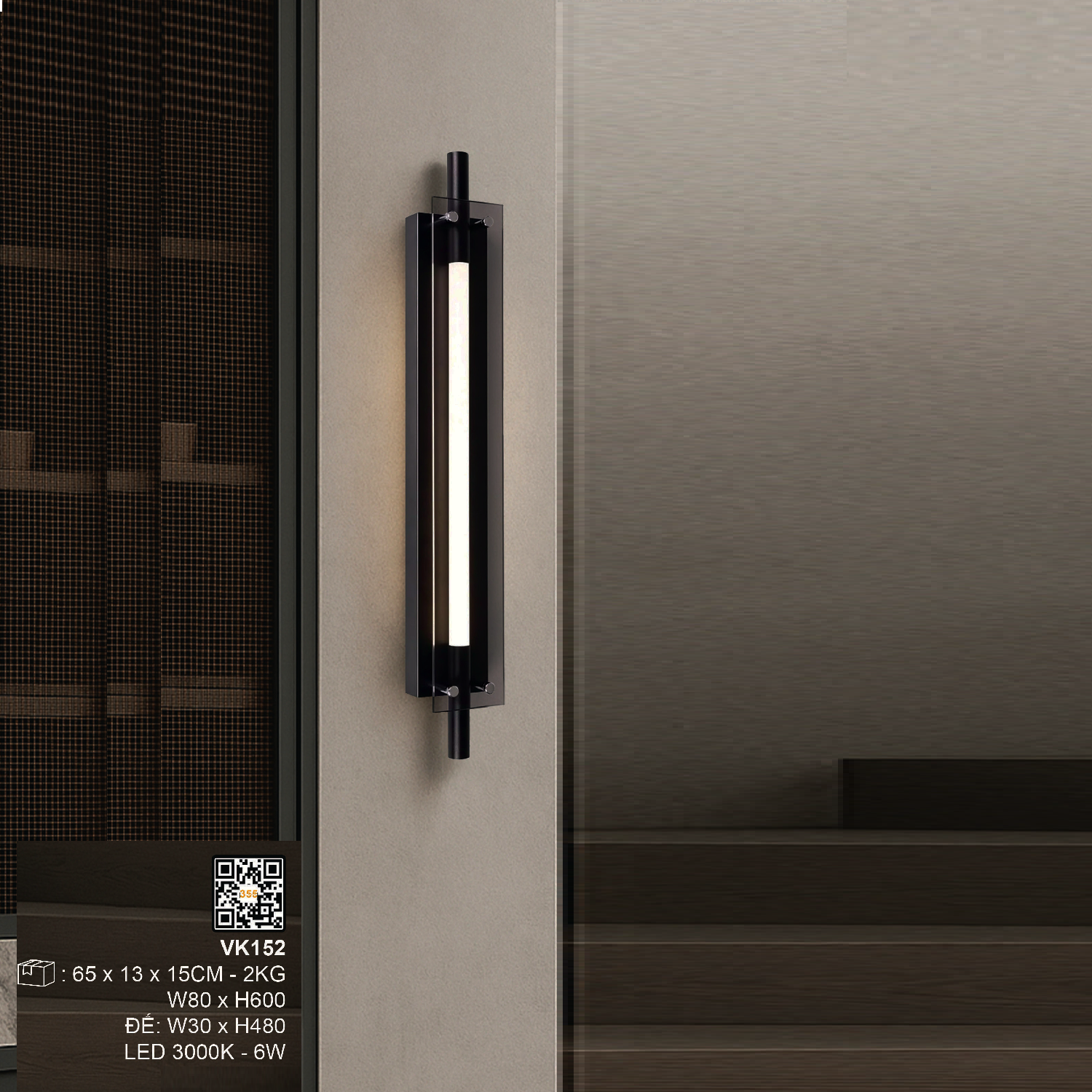 VK152: Đèn tường LED - KT: W80mm x H600mm - Đèn LED 6W ánh sáng vàng 3000K