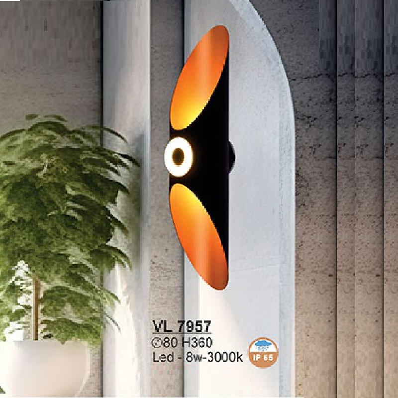 VL  7957: Đèn gắn tường LED - KT: Ø80mm x H380mm - Đèn LED 8W ánh sáng vàng 3000K