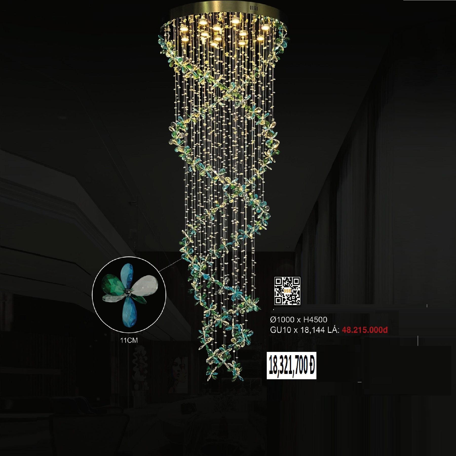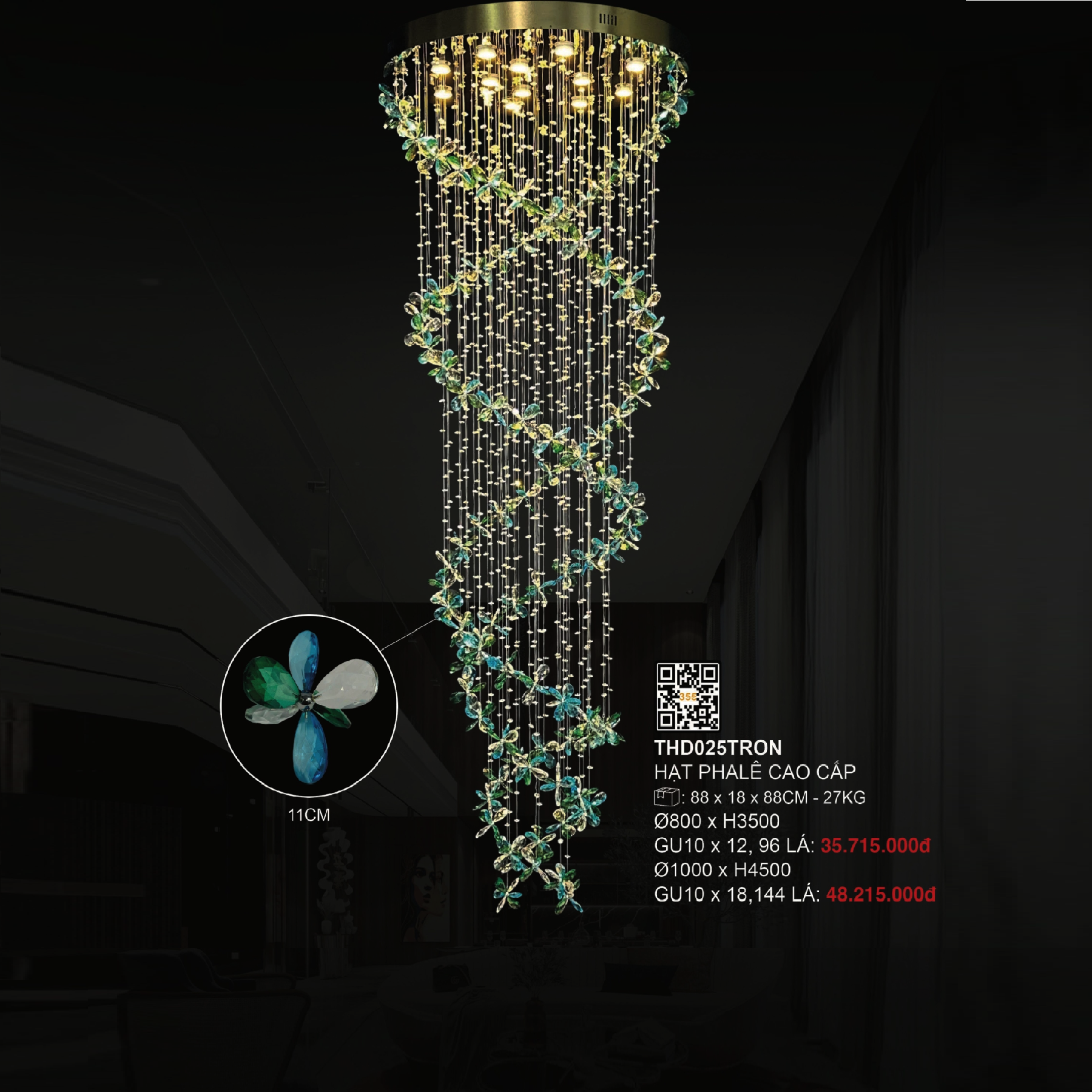 - Sản phẩm: 3 - THD025TRON: Đèn thả thông tầng LED Phale - KT: Ø800mm x H3500mm - Đèn LED U 10 x 12 bóng