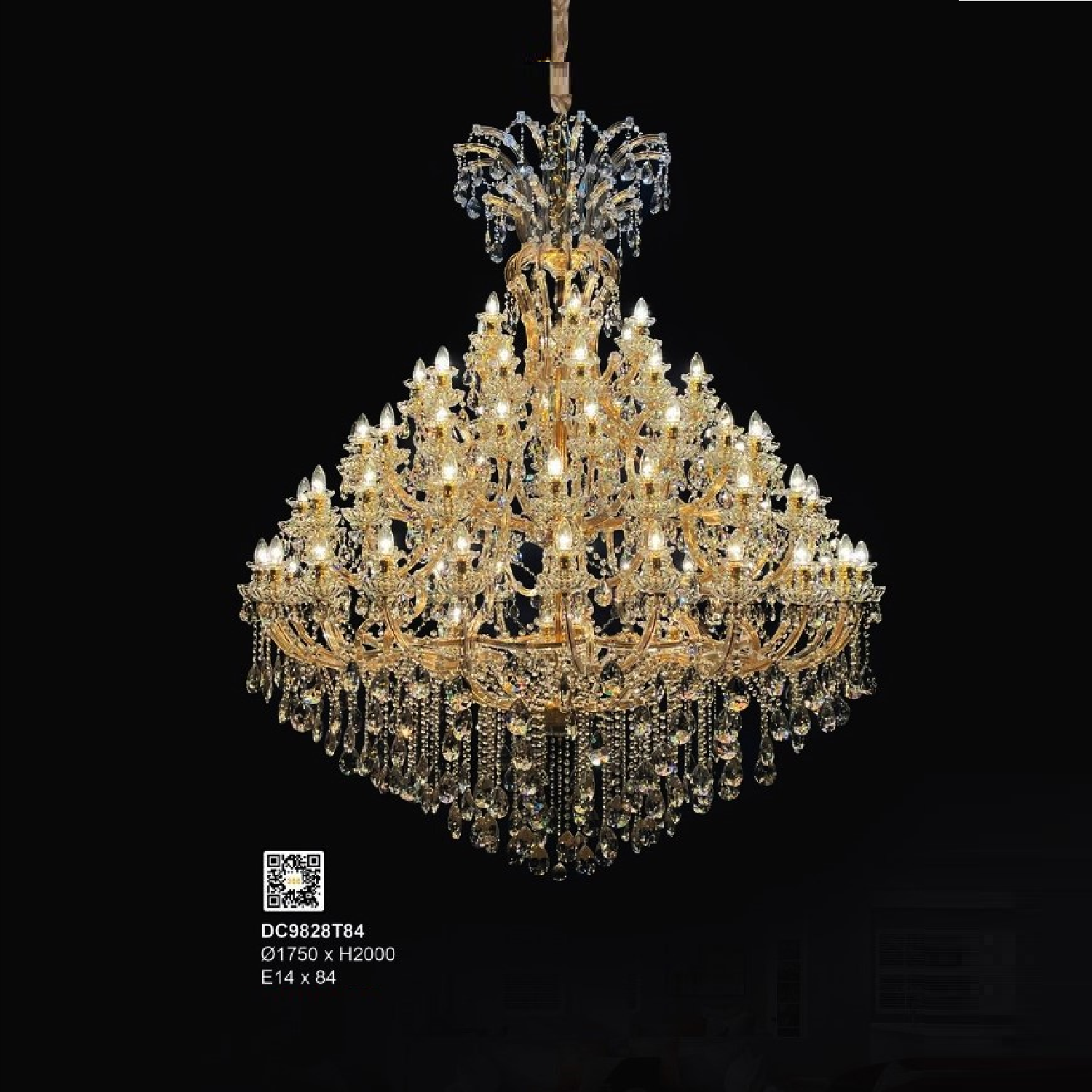- Sản phẩm: 35 - DC 9828T84: Đèn chùm Phale nến 84 tay - KT: Ø1750mm x H2000mm - Bóng đèn nến chân E14 x 84 bóng