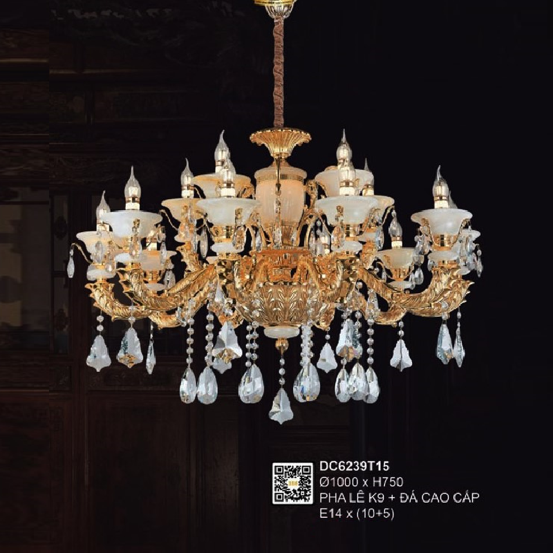 • Sản phẩm: 35 - DC6239T15: Đèn chùm nến 15 tay - KT: Ø1000mm x H750mm - Bóng đèn nến E14 x 15 bóng