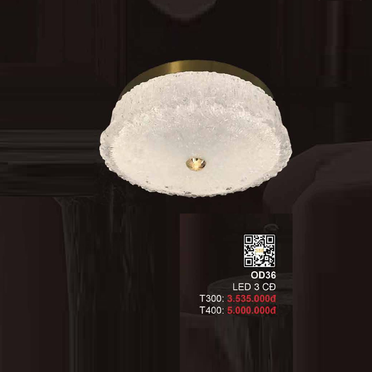 5. 35 - OD36: Đèn ốp trần thân đồng, chao thủy tinh - KT: Ø400mm - Đèn LED đổi 3 màu