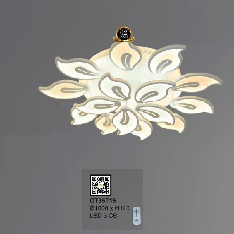 • Sản phẩm: OT35T15: Đèn áp trần LED mica 15 cánh - KT: Ø1000mm x H140mm - Đèn LED đổi 3 màu