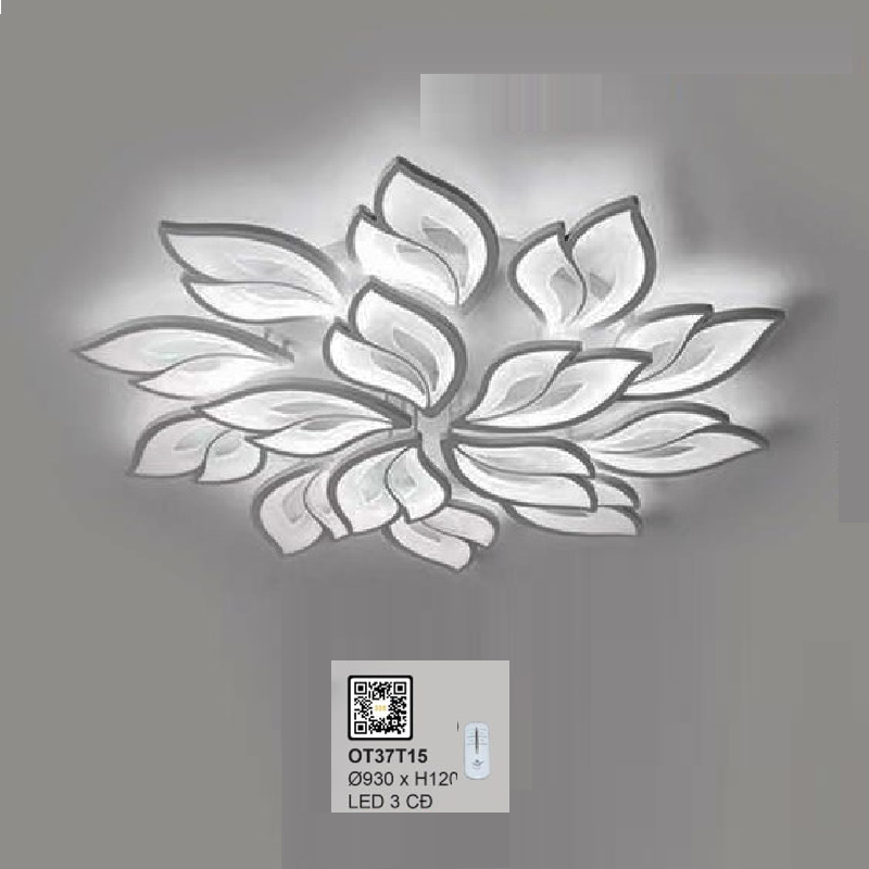 • Sản phẩm: OT37T15: Đèn áp trần LED mica 15 cánh - KT: Ø930mm x H120mm - Đèn LED đổi 3 màu