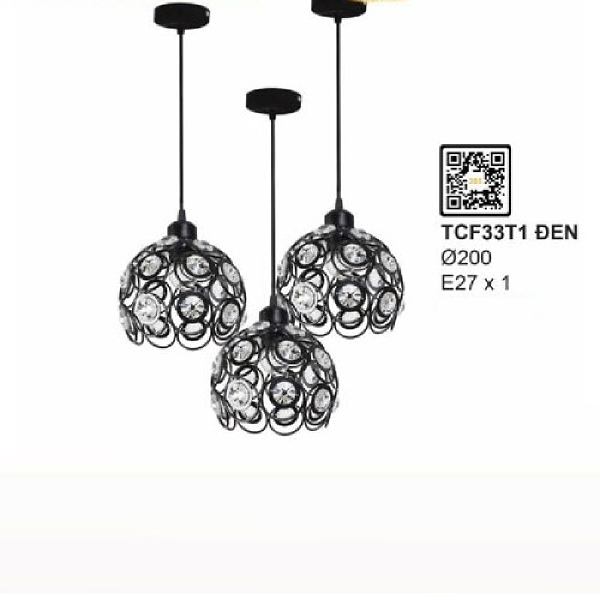 • Sản phẩm: TCF33T1 Đen: Đèn thả đơn chao đính hạt thủy tinh - KT: Ø200mm - Đèn E27 x 1 bóng