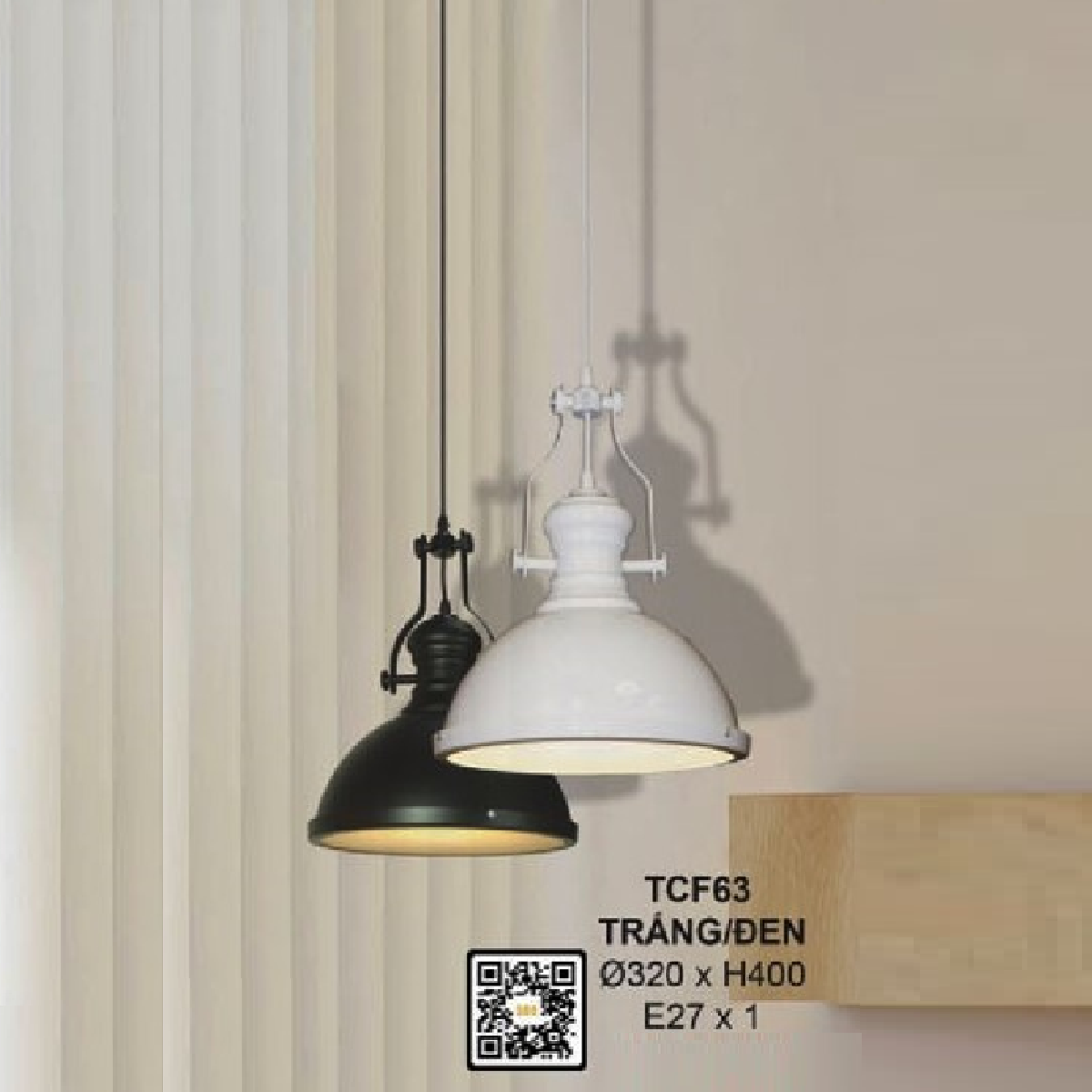 TCF63: Đèn thả đơn chao Trằng/Đen - KT: Ø320mm x H400mm - Bóng đèn E27 x 1 bóng
