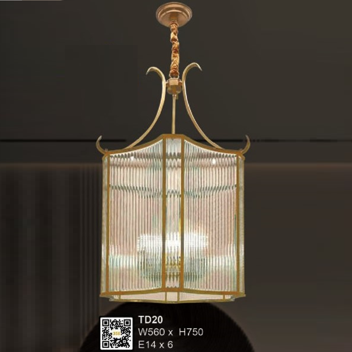 35 - TD20: Đèn thả chao thủy tinh - KT: W560mm x H750mm - Bóng đèn E14 x 6 bóng
