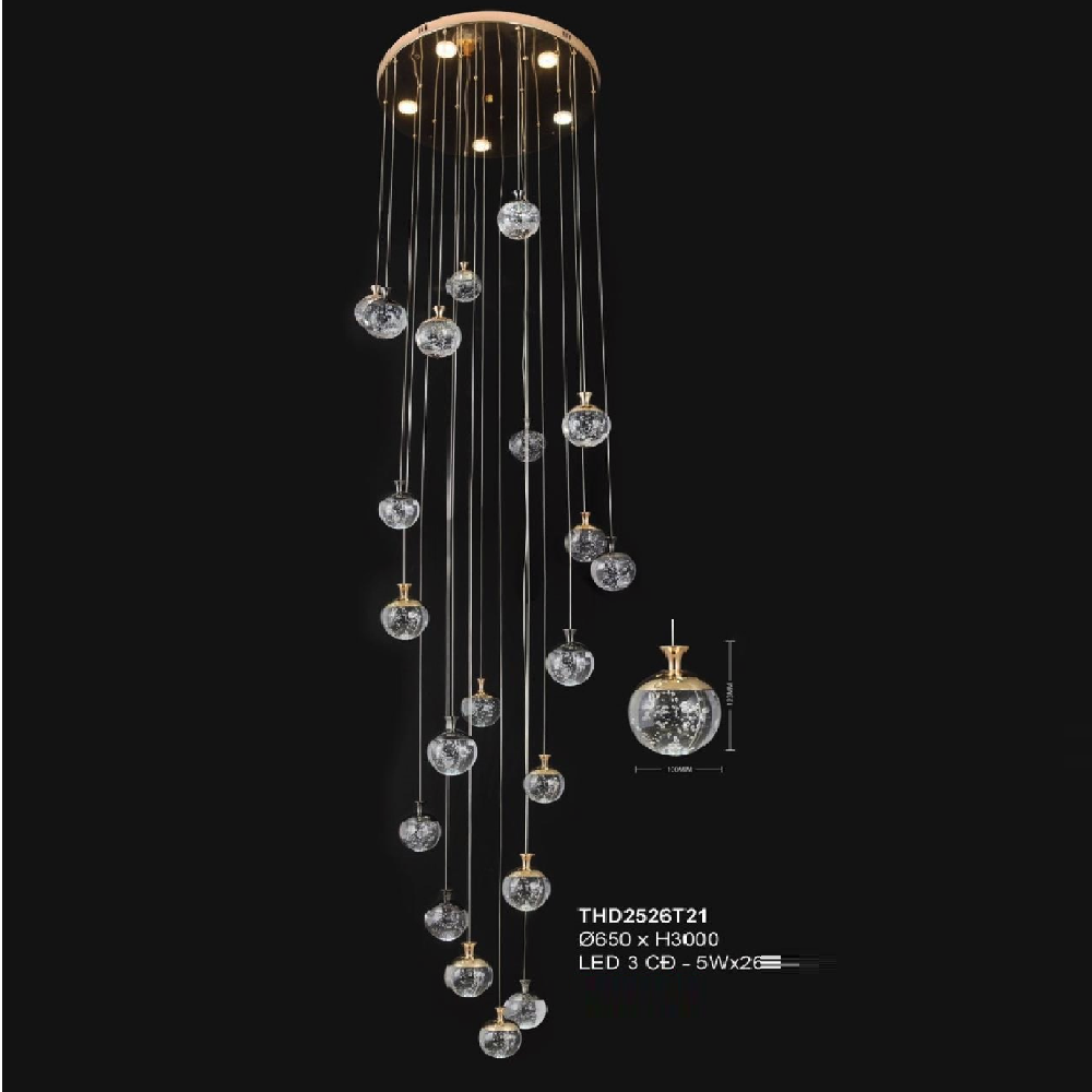 5. 35 - THD2526T21: Đèn thả LED - KT: Ø650mm x H3000mm - Đèn LED đổi 3 màu + LED 5W x 26 bóng