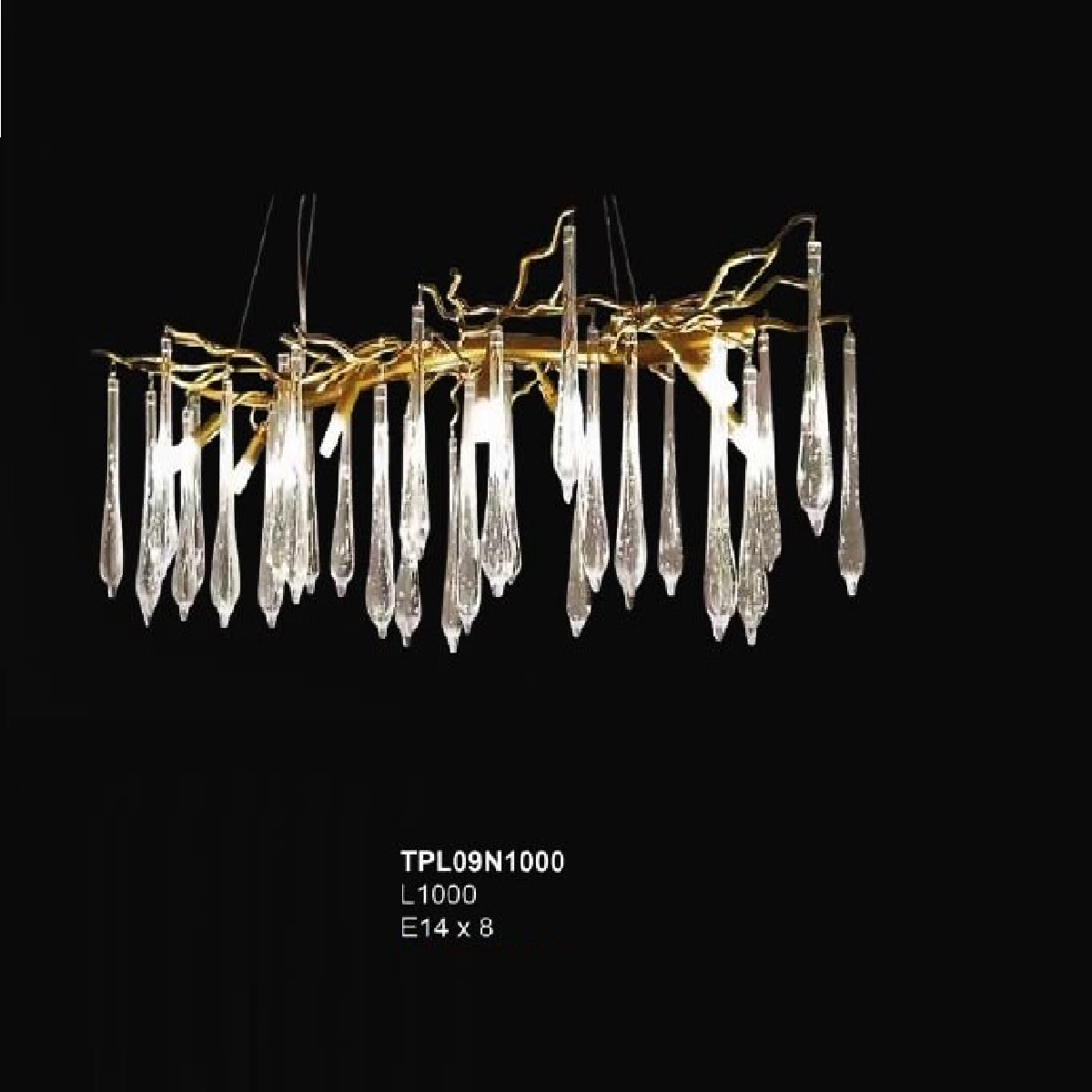 35 - TPL09N1000: Đèn thả Phale giọt nước - KT: L1000mm - Đèn E14 x 8 bóng