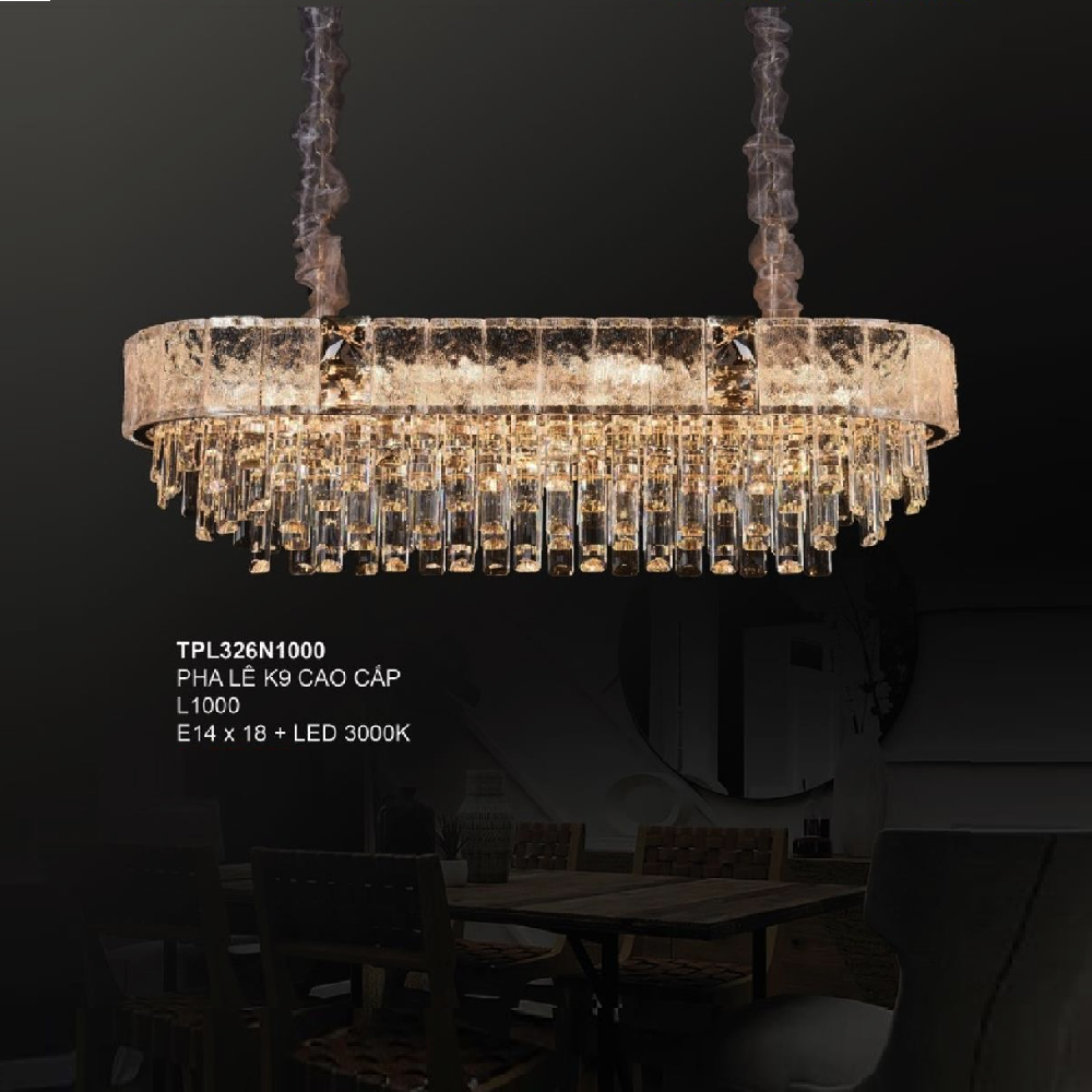 - Sản phẩm: 35 - TPL326N1000: Đèn thả Phale ngang - KT: L1000mm - Bóng đèn E14 x 18 bóng + Đèn LED ánh sáng vàng 3000K