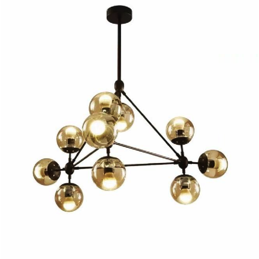 TTK01T10 ĐEN: Đèn chùm thân màu đen chao thủy tinh 10 bóng - KT: L1000mm x H800mnm - Bóng đèn E27 x 10 Bóng