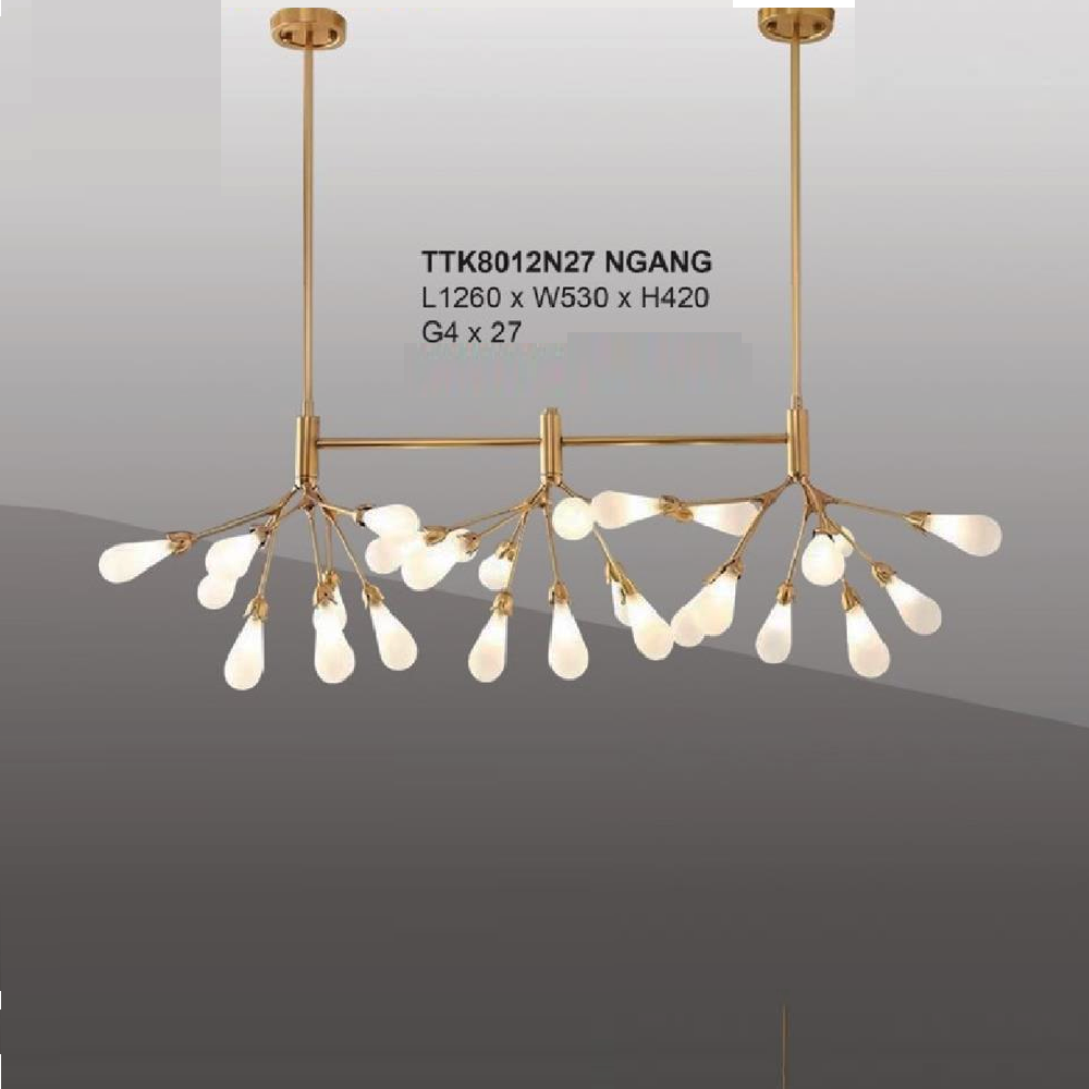 • Sản phẩm: 35 - TTK8012N27 NGANG: Đèn thả ngang chao thủy tinh - KT: L1260mm x W530mm x H420mm - Đèn LED G4 x 27 bóng