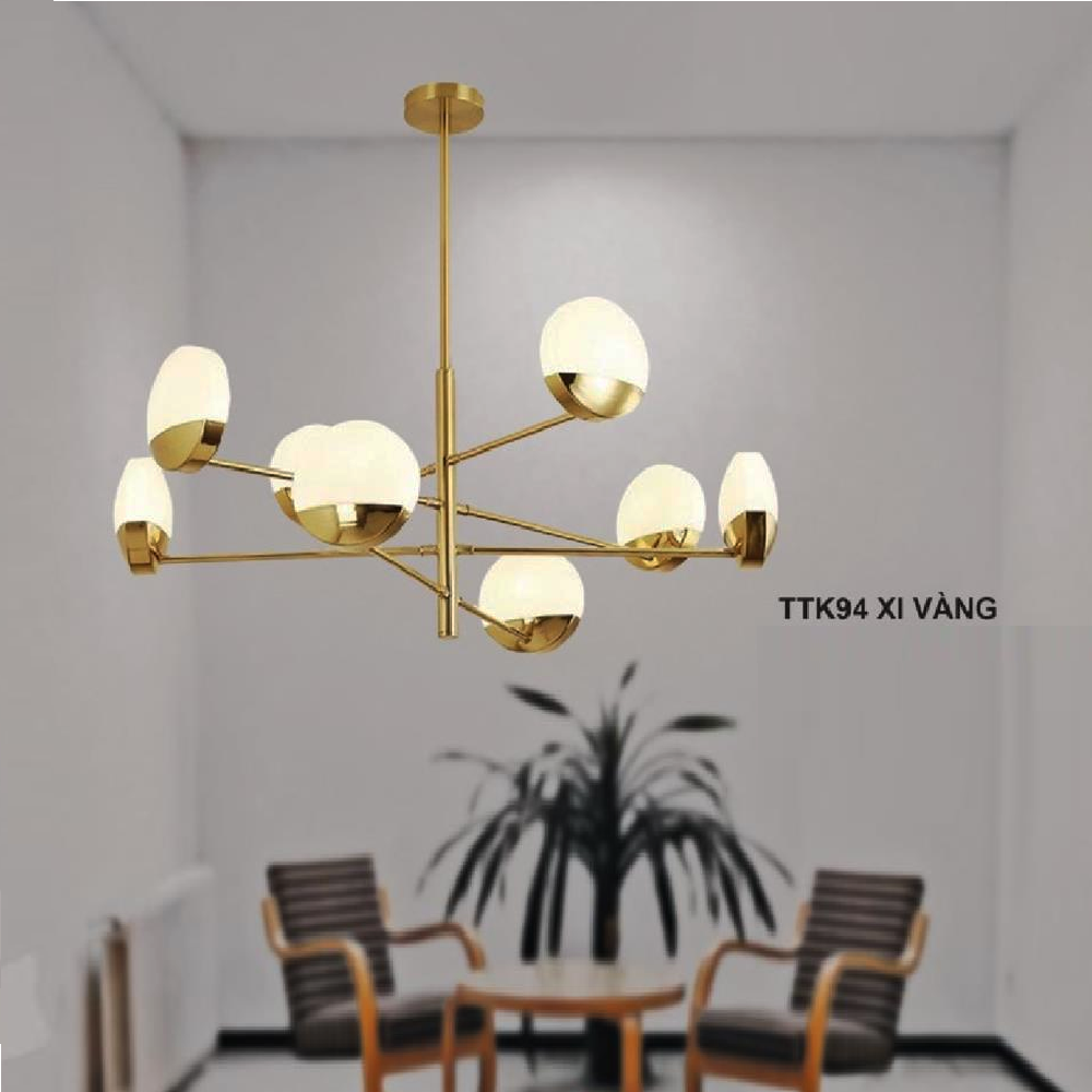 - Sản phẩm: 35 - TTK94 XI VÀNG: Đèn chùm LED 8 tay - KT: Ø900mm x H700mm - Đèn LED G9 x 8 bóng