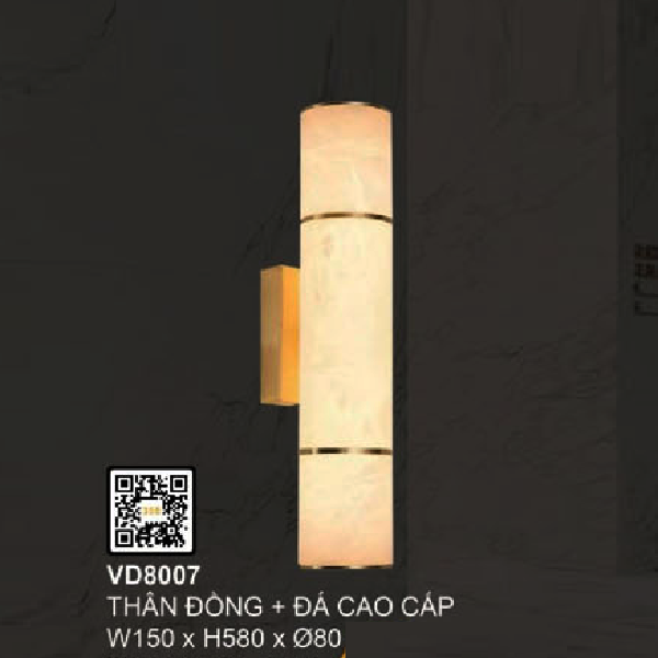 - Sản phẩm: 35 - VD8007: Đèn gắn tường đồng chao đá - KT: Ø80mm x W150mm x H580mm - Đèn LED 18W ánh sáng vàng 3000K