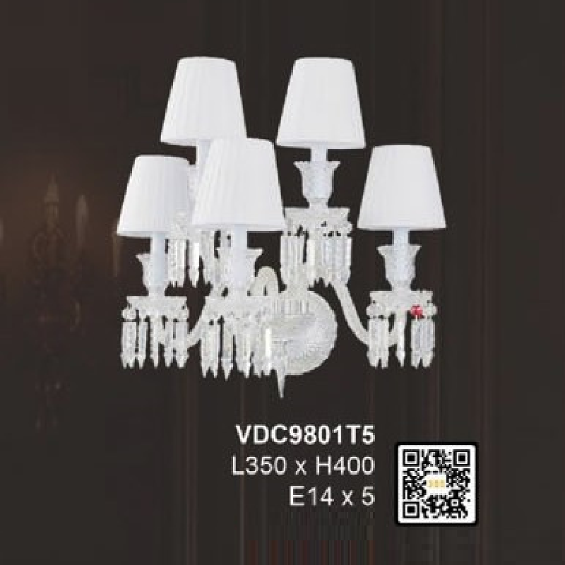 - Sản phẩm: 35 - VDC9801T5: Đèn gắn tường 5 bóng - KT: L350mm x H400mm - Bóng đèn E14 x 5 bóng