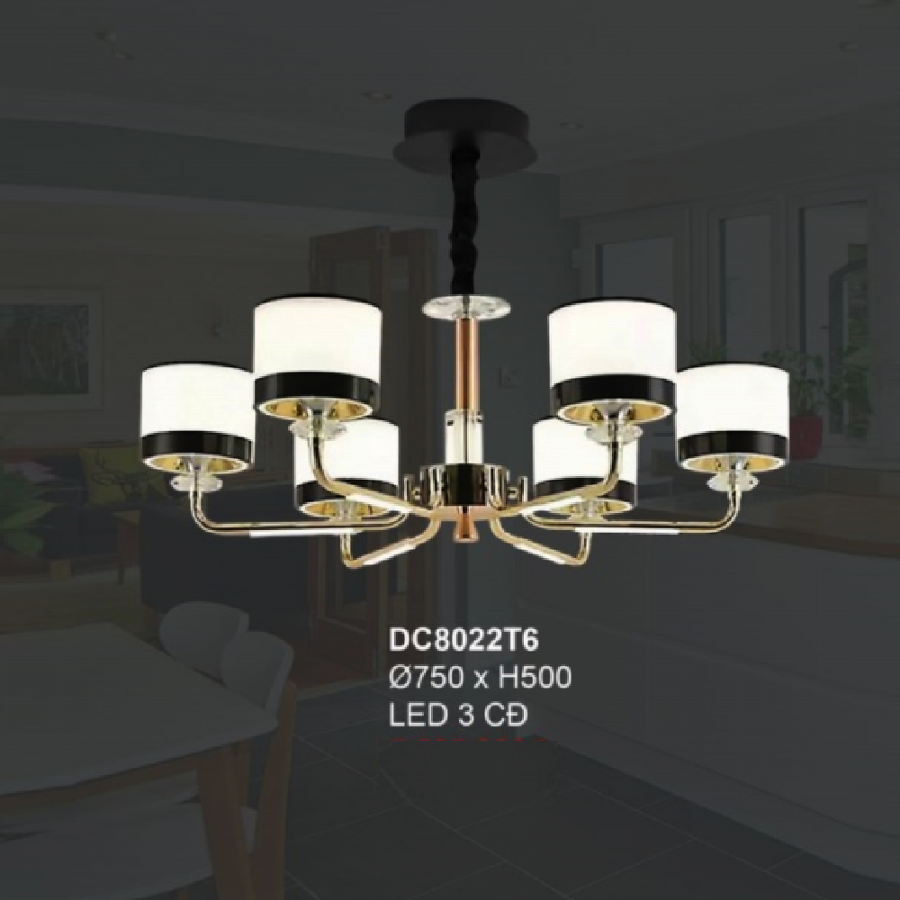 • Sản phẩm: 35 - DC8022T6: Đèn chùm LED 6 tay - KT: Ø750mm x H500mm - Đèn LED đổi 3 màu