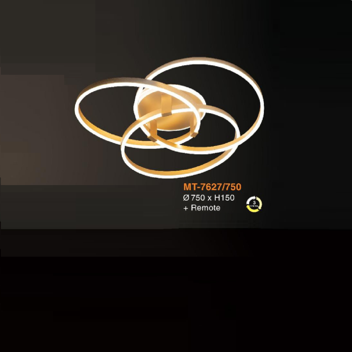 V -  MT - 7627/750 : Đèn áp trần LED 3 vòng thân  xi vàng -  KT: Ø750mm x H150mm - Đèn LED đổi 3 màu