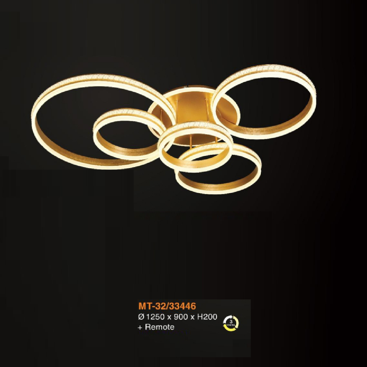 • Sản phẩm: V - MT - 32/33446: Đèn áp trần LED 5 vòng thân xi vàng - KT: L1250mm x W900mm x H200mm - Đèn LED đổi 3 màu