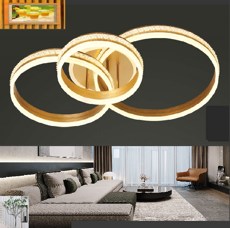 • Sản phẩm: VE - MT - 32/345: Đèn áp trần LED 3 vóng, thân xi vàng - KT: L850mm x W600mm x H150 - Đèn LED đổi 3 màu